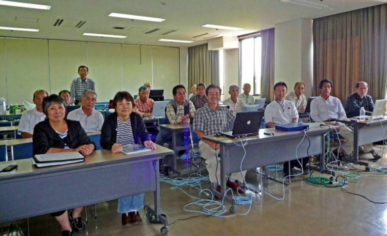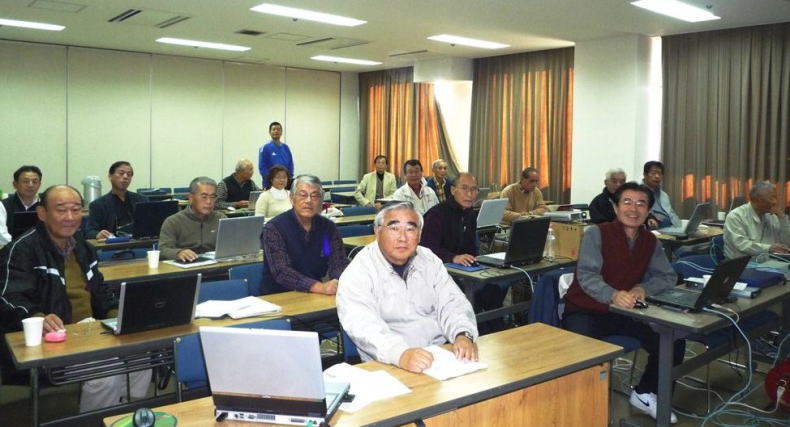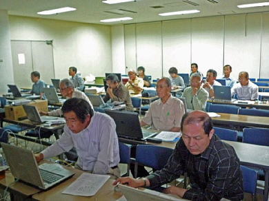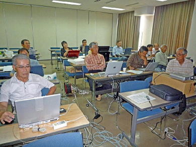 | 6月11日、第16回パソコン交流会を鳥栖中央公民館にて開催しました。5月末現在、佐賀地区会員の約65%の方がインターネットに加入されていて、PC交流会もこの一年で新会員10名を迎え、現在30名になりました。 そこで、今回は2年ぶりに「インターネット&メール」をテーマに、経験のあるメンバーがお手伝いをして、全員が自由に使いこなせるレベルまで学習しました。また、今回からPC交流会と毛筆同好会(新規)とを同日開催しましたが「一日を有効に活用できる」と好評で今後も継続していくことが決まりました。 (川野 克睦 記) |