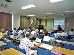 | 第17回パソコン交流会を8月6日、参加者18名で鳥栖市中央公民館にて実施しました。これまでの交流会でエクセルの使い方は2回学習していますので、今回は@エクセルの便利ワザ Aパワーポイントの活用法について、講師を羽根さんにお願いして学習しました。エクセルでは「Lookupウイザード」を使って、集計表などから目的データを自動表示する方法や「作図機能」を使った案内地図の作成を実習しました。 次にパワーポイントの活用法をスライドで説明して頂き、「パワーポイントこそ最強の文書作成ツール」である事を実感しました。 残り時間のよろず相談ではWindowsペイントでの作画の仕方など興味深い学習ができました。さらに、宿題として各自の自宅案内地図を作成し次回発表することになりました。 (川野 克睦 記) |