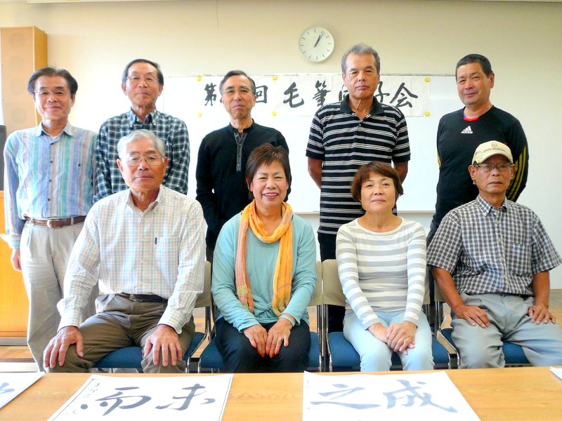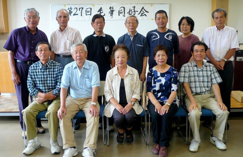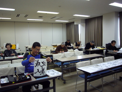 第27回毛筆同好会は、12名が参加し鳥栖市中央公会館で行われました。各自でテーマを選び大筆・小筆など一文字・