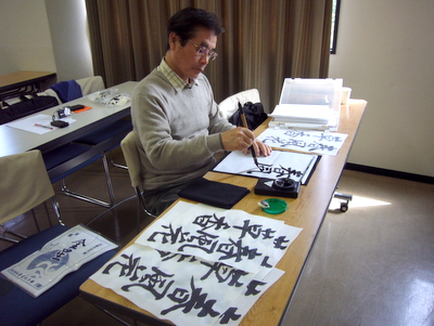 各人のテーマは自由ですが講師(古沢さん、永渕さん)より推薦の四文字・六文字を大筆で繰り返し、熱心に
