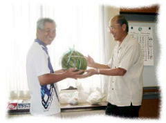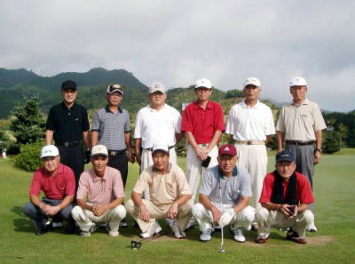 | 7月20日(水)茹だるような暑さの中、13名の参加で開催。前回優勝者の始球式(最短クラブ使用)、これを超えれば第一の関門をクリアー。出だしは好調、一人の落伍者も無くハーフを終えると、堰を切った様に冷えたビールでのどを潤す。 昼食後プレー再開、今回の日の隈GCは急変するフェアウェイ等々で珍プレー続出、ボールを捜し当てた後のショットはエネルギーを一気に消耗してしまう。しかし、後半も全員無事廻り終えた。 一風呂浴びての表彰式はまた楽しみの一つである。今回の賞品はスイカ、メロン、ブドウなど季節の果物が中心で、毎回趣向を凝らした賞品は家庭への土産として大評判である。その日の出来次第で入賞の可能性があることが、このコンペの最大の楽しみであり、今回は私(岩川)が優勝の栄に浴したが、この記事を引き受けるというオマケが付いた。 帰路に着く参加者の満足感にあふれる、日焼けした笑顔が印象に残る真夏の競演であった。 ( 岩川 寛 記) |