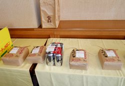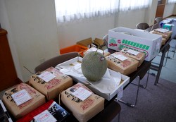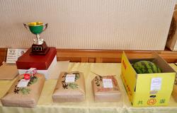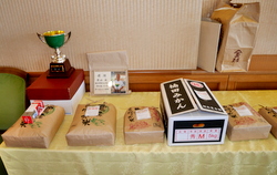 沢山のお米、フルーツなどの賞品 表彰式までの懇談風景 |