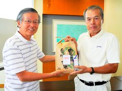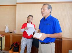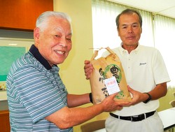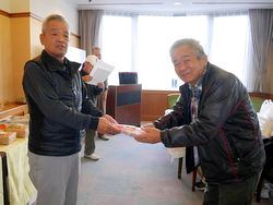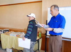 飛び賞の方へ賞品 第三位の賞品を受け取る高取さん 準優勝の賞品を受け取る宮崎さん |