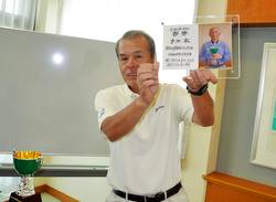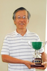 準優勝の矢野さん 優勝の久保さん 今回1位~3位の皆さん 優勝カップを手に久保さん |