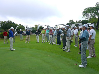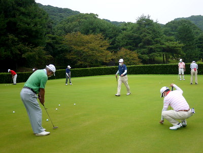 開始前の懇談 パットの練習風景 |