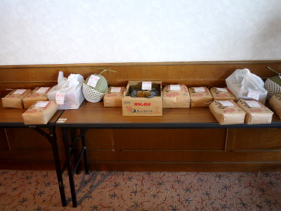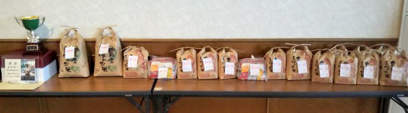 たくさんの賞品の数々(米、果物等) |