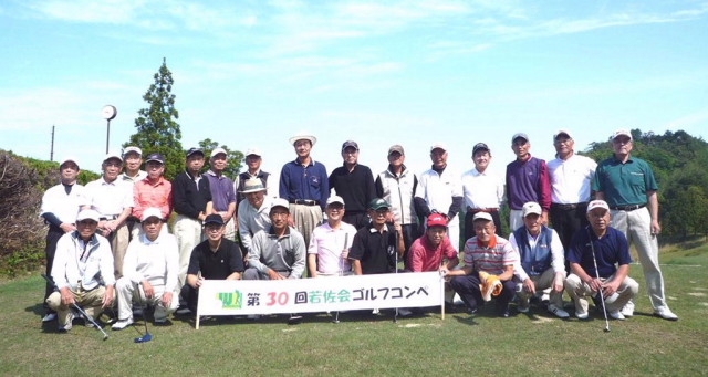 | 新緑眩しい季節の中、第30回若佐会ゴルフコンペが5月18日(月)大博多ccにて26名が参加し開催されました。当日は前日の雨とは打って変わり、絶好のゴルフ日和に杉コースと桧コースよりスタート、それぞれ熱戦を繰り広げました。プレーの結果は新年度のハンディーキャップ改正が行われた関係もあり、アンダーパーが9名も出るほど、好スコアーが続出し、レベルの高い熱戦になりました。優勝は私がハンディーキャツプとパートナーに支えられ、運良く優勝する事が出来ました。2位には同組の小倉さん、3位には西村さんがそれぞれ入賞されました。今回も沢山の商品が用意され、それぞれ、前回優勝者の中園さんより手交を頂きました。次回からもお互い体力と技を磨きあげて臨むことを参加者一同誓いあい散会しました。(平 照義 記)
