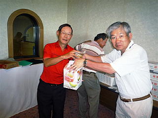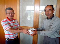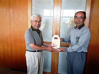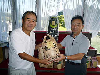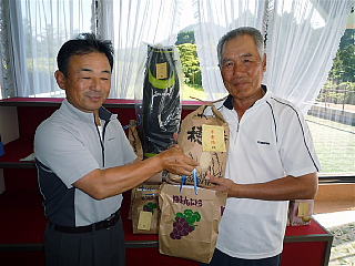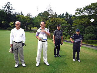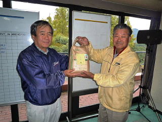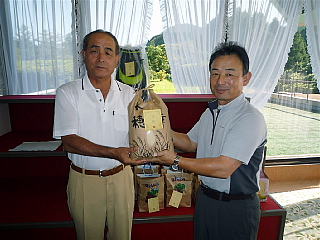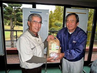 和やかなムードの中にも緊張感をもってスタートしました。結果はアンダーパーが11名も出る稀に見る激戦の中、 自分でも驚く(-12)と脅威的スコアで私「吉富」が初優勝しました。勝因は豊富なハンディと素晴らしい同伴者より適度なアドバイスを受け気持ちよくプレイで来た事と思います。2位に岩川氏 3位には小副川氏が入賞、賞品の米・ブドウをそれぞれが獲得されました。 若佐会は2回目の参加ですが、素晴らしい先輩たちばかりで居心地の良い会です。まだ、ゴルフをされる方で入会されていない人がいれば、是非入会する事をお勧め致します。今後は厳しいハンディになると思いますが、実力での優勝を目指し頑張りたいと思います。今回コンペに参加された方、楽しい一日を有り難うございました。(吉富 正次 記) |