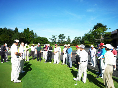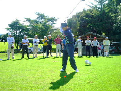 参加者は 28名に減りましたが、全員で記念撮影の後、前回優勝の内野 義隆さんの始球式後、東南コースと南西コース