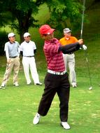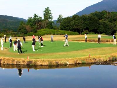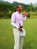 美しい丘陵コースでの、予想外の早いグリーンに全員が悩まされながらも、見事にグリーンを読み切って、一人だけ