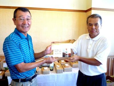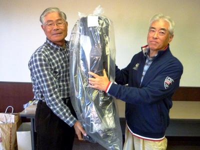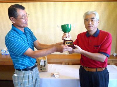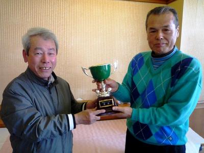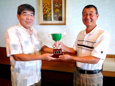 前回優勝の江口孝司さんから今回優勝の福岡茂明さんへ 優勝カップの授与 |