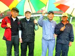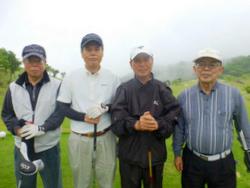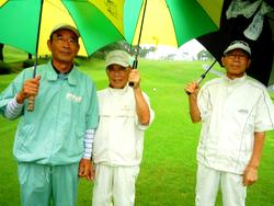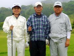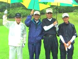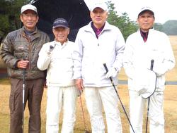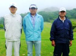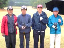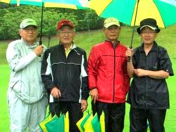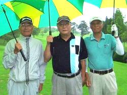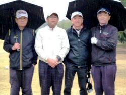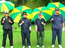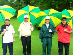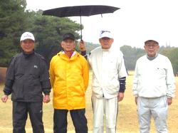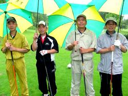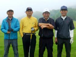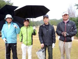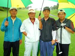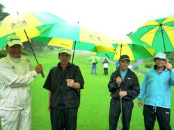 2回連続中止となり、今日こそはと全員意気込んでゴルフ場入り。しかし、今日も小雨模様。午後からの晴を