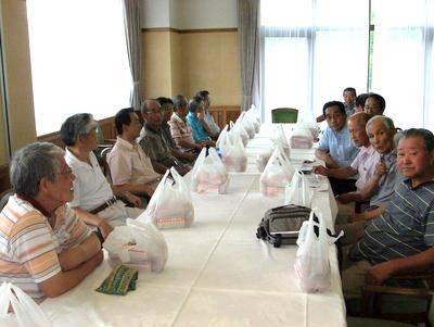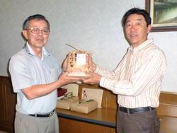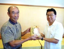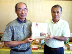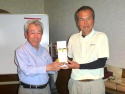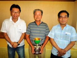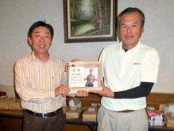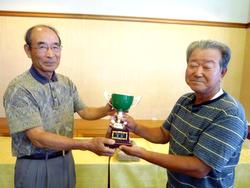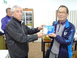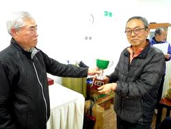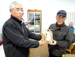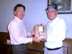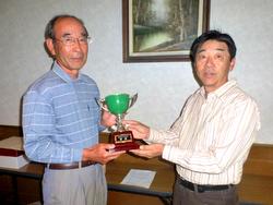 前回優勝の金丸さんに優勝記念楯授与 昨年度ポイント優勝の内野さんに賞品授与 優勝:中園正二郎さん