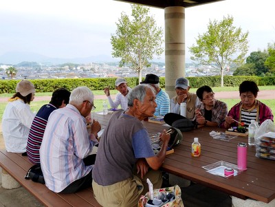 休息では、東屋に秋風が吹いて気持ちが良くて、皆さんと楽しい会話が弾んで、和気あいあいの一時でした。