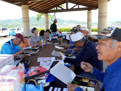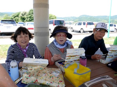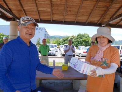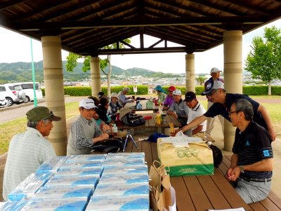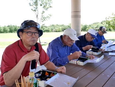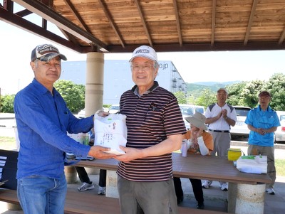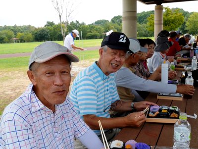 24名の参加者で3ラウンドを行い、競技終了後、高台からの景色と心地良い風を感じなから弁当を食べ、親睦を深め
