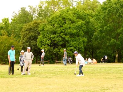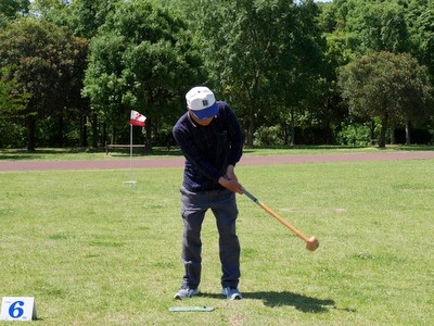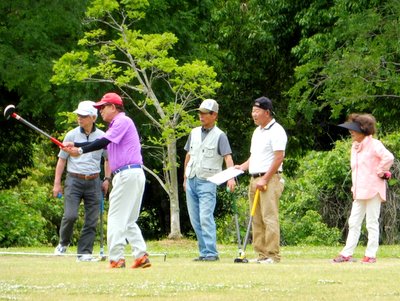 見晴らしが良く、好天に恵まれて30名の参加者で6チームに分かれ3ラウンド行いました。芝生コースでしたが9名の