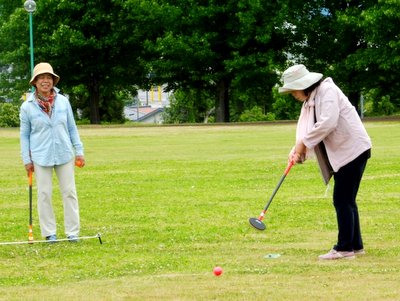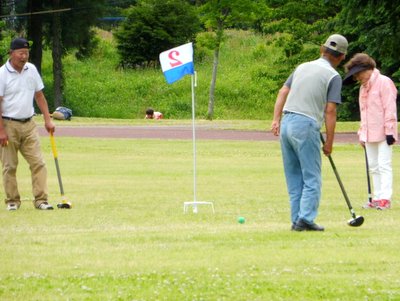 草は成長して、ボールは飛ばないし、転がりも悪く、悪戦苦闘しましたが、29名の参加者で3ラウンドを行い、それでも