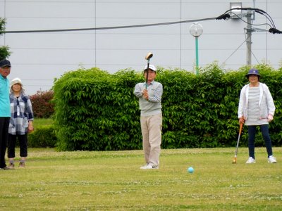 4/25(木)第2回佐賀地区グラウンドゴルフ大会を鳥栖市役所裏のグラウンドで行いました。参加人員は交流会参加3名、応援者
