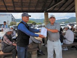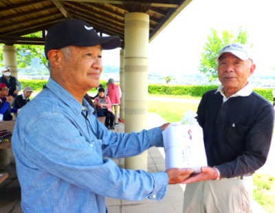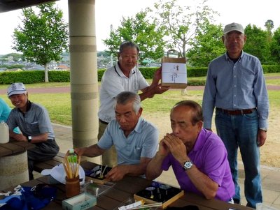 ルインワンを8名の方が達成され、競技終了後は昼食弁当をわいわいがやがやととりながらスコア集計も終わり、表彰は・一位〜五位・飛賞と・・・多くの方が頂きました。