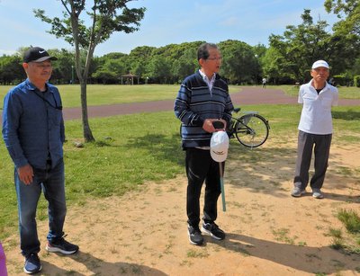 5月21日(水) 第三回グランドゴルフ大会を鳥栖市役所北側グランドで開催しました。前日は一日雨が降って開催が危惧されましたが、当日は好天に恵まれて(この第三回大会は昨年10月の予定が三度中止・台風/雨/雨)やっと開催できて皆さん一同喜びもひとしおでした。