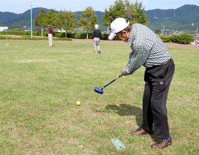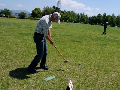 第5回佐賀地区グラウンドゴルフ大会を5月25日に鳥栖市今町の東公園(おひさまの丘)で開催しました。高台で