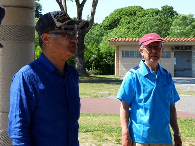 台風の影響を受けて小雨と強風のなかでの開催となりました。先月末よりの雨続きで公園整備が出来ずに、芝は長く