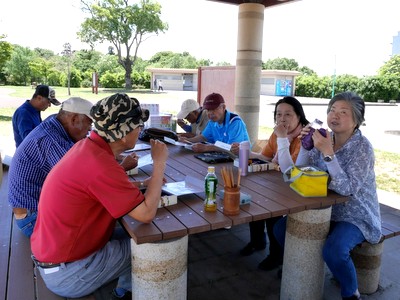 ラウンド毎の休息では、東屋にて皆さんそれぞれに楽しい会話が弾んで和気あいあいの競技大会となりました。