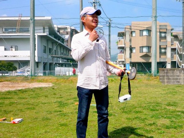 台風の影響を受けて小雨と強風のなかでの開催となりました。先月末よりの雨続きで公園整備が出来ずに、芝は長く
