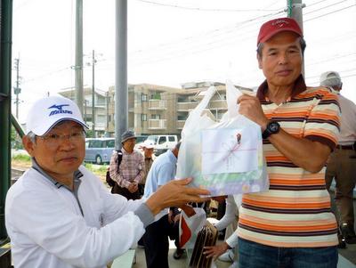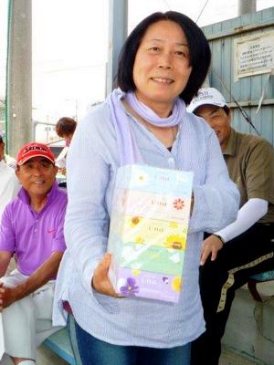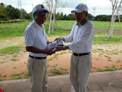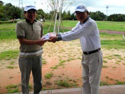 久しい再会に旧交を温めながら和気藹々の内に競技が終了。早川幸夫さんが見事「39」のスコアで優勝。賞品の「洗剤セットの大盛り」を獲得されました。参加賞には「ティッシュベーバー」を全員が頂き次回の開催を期待し散会となりました。