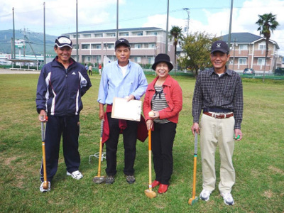 4/25(木)第2回佐賀地区グラウンドゴルフ大会を鳥栖市役所裏のグラウンドで行いました。参加人員は交流会参加3名、応援者