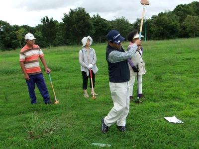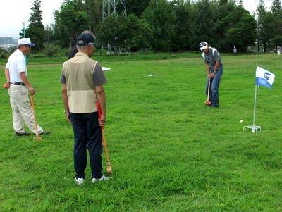 見晴らしが良く、好天に恵まれて30名の参加者で6チームに分かれ3ラウンド行いました。芝生コースでしたが9名の