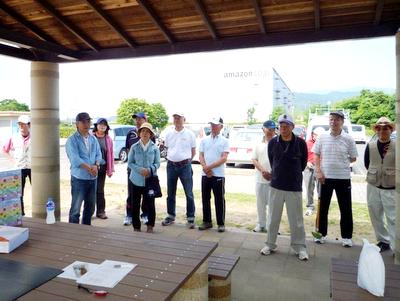 5月21日(水) 第三回グランドゴルフ大会を鳥栖市役所北側グランドで開催しました。前日は一日雨が降って開催が危惧されましたが、当日は好天に恵まれて(この第三回大会は昨年10月の予定が三度中止・台風/雨/雨)やっと開催できて皆さん一同喜びもひとしおでした。