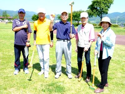 前回第一回大会は2ラウンドで終了しましたが、今回は3ラウンドを行いました。好天に恵まれたこともあり、あちこちで大きな歓声が上り、ホールインワン達成者が何と10名も現れました。競技終了後は昼食をとりながら各自親睦交流を深め、表彰式を行いました。心地良い汗を流しながらの楽しいひと時を過ごしましたが、生涯スポーツとしてグラウンドゴルフは最適です。より多くの方が積極的に参加され更なる健康増進に役立てて頂ければと願っています。