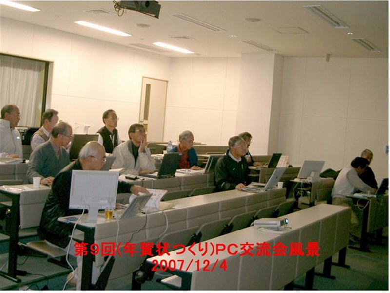| 今年最後となる第9回パソコン交流会が、12月4日基山町民会館で開催されました。師走に入った当日は冷え込みも一段と厳しくなりましたが、事もあろうにエアコンが故障中との事。復旧の見込みが立たず、各自で暖を取るのに一苦労でした。 さて、今回は年末恒例の「年賀状作成」ソフトを使って行いましたが、出来栄えは如何なものか?皆さん、お正月を楽しみになさってください。 また、パソコンの「起動や処理遅延」を解決する専用ツールも勉強しました。更には、パソコンに搭載されているRAMメモリーも512メガバイト以上を必要としています。容量不足のパソコンはメモリー増設されることをお奨めします。 最後に、次回の開催は2008年3月中旬頃を予定しますが、ご案内は2月に入って行います。 (樋口靖則 記) |