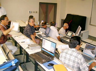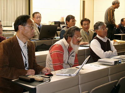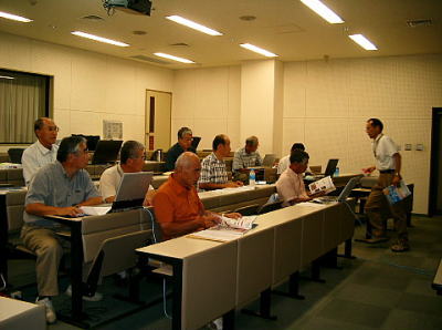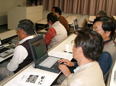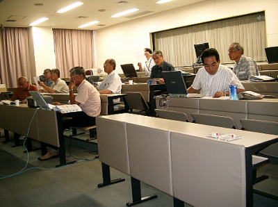 | 8月21日連日茹だるような残暑の中、冷房完備の基山町々民会館にて2ヶ月ぶりのパソコン交流会を開催しました。前回のメール・インターネット研修に続き、写真圧縮の方法や種類を各人の持ち寄りデータでレベルアップを図りました。午後からは「フリーウエアソフトを活用しよう」と銘打って、数種類のソフトを樋口さん小林さんのリードで交流検討会を行いました。最後にPLCの導入体験報告と、若佐会(ゴルフ)のスナップ写真とハンディキャップのエクセルデータ研修(担当羽根)をして、次回10月16日の開催日を決め散会しました。(羽根信夫 記) | |