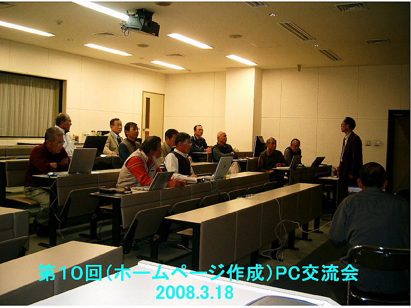 | 3月18日、第10回パソコン交流会を基山町々民会館で開催しました。(12名参加) 今回のテーマは、かねてより要望の多かったホームページ作成を学びました。講師は、松九会ホームページを担当されている福永さんにお願いし、午後の約3時間で行いました。準備された資料を使って分りやすい講習をうけ、皆さん熱心に取り組み海外旅行記のホームページを作り上げました。やればやるほどに奥行きも深く、次回も復習を兼ねて2度目の挑戦を行いたいと思います。今回不参加の方も、次回は是非ご参加ください。 (樋口靖則 記) 尚、来年度のパソコン交流会の運営について、下記の内容でまとまりました。 ・次回(6/26)テーマ:@ホームページ作成(NO.2) Aデータバックアップの方法など ・来年度スケジュール:6/30(月)、8/28(木)、10/9(木)、11/27(木)、2/26(木) <木曜日開催> ※皆さんの都合が良い木曜日で行います。 ・開催場所(変更予定):鳥栖市中央公民館(鳥栖市民文化会館隣り) ※15回線のインターネット回線が使用でき、一年間の予約ができます。 ・世話役:川野さんにお願いする事になりました ※来年度は、世話役二名体制で行う事も決まり、溝越さんにお願いする事になりました。 ※樋口さん、この一年のお世話活動ありがとうございました。 (小林正勝 記) |