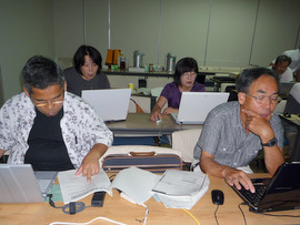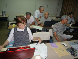 参加メンバーのOSはXP、Vista、Windows7。アプリケーションもWord2000から2010まで、機能はほぼ同じでも画面がまったく違います。皆で探しまくりながらの勉強会、便利に出来ているのですが、使い方が判らない、ようやく使い方を、見つけて?納得!でも日常使うことの無いWord、次に使うときには、たぶん使い方は忘れているのでしょう。でもそれでいいのです。私達は今、頭の体操をしています、老化を防ぐ、大切な行動です。使わなくなった頭を少しでも動かす事で、老化の進行を抑えているのです。