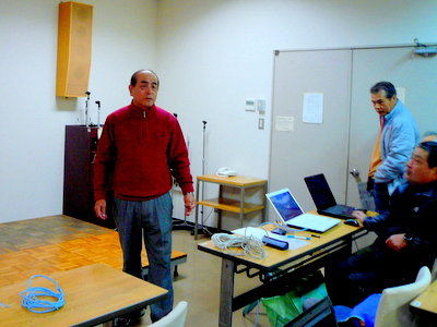 事前打合せ中の講師、小副川さんと野田さん 説明する野田さん |