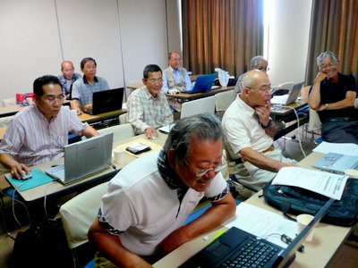 講師の小副川さんの発案で、第27回(H23/7)からマイクロソフト・オフィス・スペシャリスト試験(MOS)の練習問題集に沿って、WordとExcelを学習してきました。講座で使った資料は約200ページとなり家庭での手引きとして活用出来そうです。