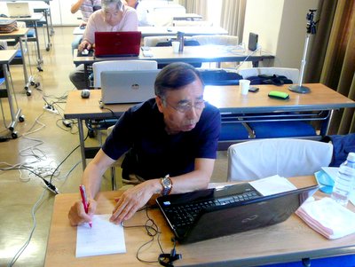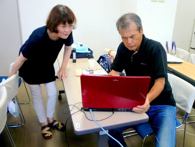ところで小林さんのPCが新しくなっていました。前回緊急で参加頂いた樋口さんの斡旋で中古ですが、スピードぴか一のPCです。皆のPCと立ち上げ時間の競争比較などして楽しみました。