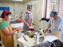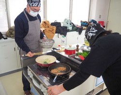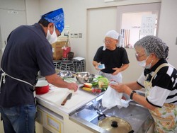 出来る家庭料理」を作りました。世話人より料理内容の説明後、講師の梅林先生より、料理工程を詳細に説明