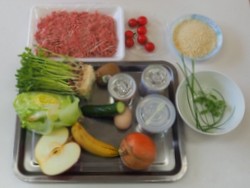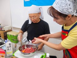 メニューは「ハンバーグ」です。 講師はカナダのオタワ大使館で料理長を務められた、梅林様を招いて「簡単に