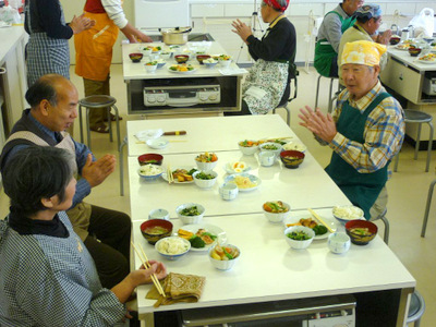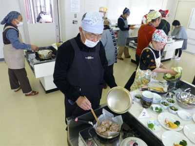 料理教室は懇親の場としても、陽気に和気アイアイと試食懇談で盛り上がり、参加の皆さんも最初は出来上りが心配そうでしたが、料理が次々に出来たことに安心と満足の様子でした。又、年2回の料理教室を増やしてほしい意見等があり、検討していくことにした。