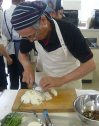5種類のレシピをプロの講師から、分かり易くポイント毎に説明を頂き、いざ料理開始。アジのたたきには苦戦しましたが初めて魚を捌(さば)いた方も、慣れた方も出来栄えは上々。日ごろ台所で腕を振るっている参加者からは、豚肉の生姜焼きは一押し定番として、直ぐに家庭で作れると人気がありました。