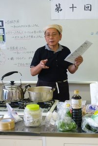 テーマである「旬の食材と塩麹を使った、誰でも簡単料理」にぴったしのレシピでした。 昼食懇談では、まろやかでなかなか美味しいとの声が多く、早速習った料理を自分で作り、家庭サービスをしたいと言われていました。(橋本 文則記)