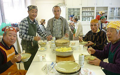 今までは体調の事を余り気にしていなかったが、最近年のせいか、食事の事も気になっているし、自分でも料理を習いたいと思っていた所、料理交流会のお誘いがあり、この機会にと参加しました。参加して良かったのは仲間とワイワイ楽しく料理を作ることが出来たことです。これをきっかけに、自分でも料理にチャレンジしたいと思っています。(A・S記)