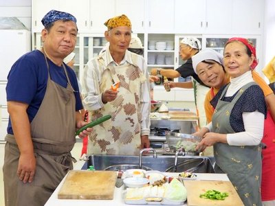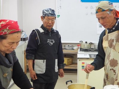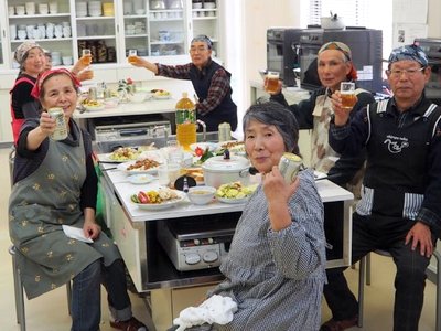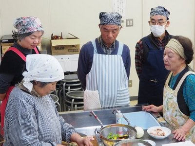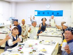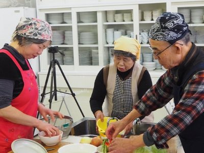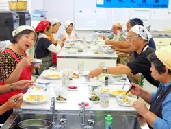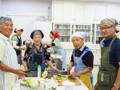 ゼリーです。世話人より料理の取り掛かる前に丁寧に説明されてから、頂いた冬瓜の大きさにみなさん驚き、解体では歓声と拍手で盛り上がりました。男性の包丁さばきの腕も上がり下準備では表情にも余裕が見られ、料理の仕上がりもスムーズに進みました。
