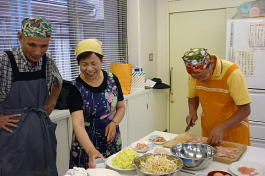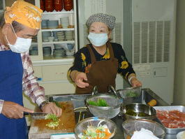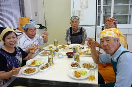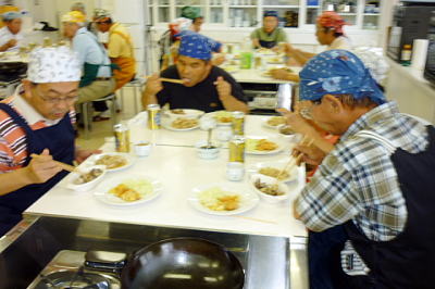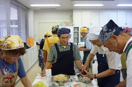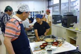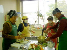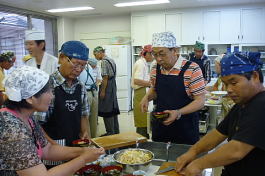 今回は三品の料理に挑戦しました。普段、料理しない人向けに簡単に料理を選んであり、初めて参加の私も楽しく簡単に作れました。又、材料の下準備をする、料理する、食器を洗う等の段取りがグループ内でスムーズにでき感心しました。その後、作った料理を歓談しながら一緒に食べるのが料理教室の一番楽しい時間です。今度、料理を作る機会を一度作ります。(MM 記)
