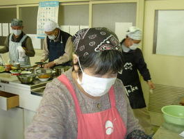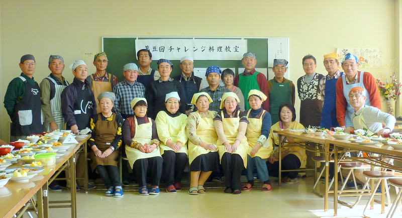 今年、最初の同好会として第5回チャレンジ料理教室を田代公民館で行いました。今回は18名が参加され、「誰でも簡単に出来る和風料理」をテーマにとりくみ、レシピの内容は6種類を5班に分かれて、チャレンジしました。最初にレシピを基にポイントを分かり易く説明を頂き、各班のボランティアの指導を受け調理開始、中には包丁での野菜のさばき方など基本から習つたり、煮付け方など悪戦苦闘しながら料理を作ることが出来ました。