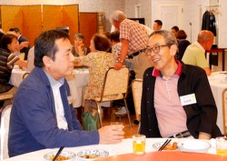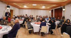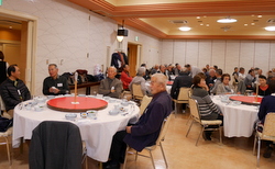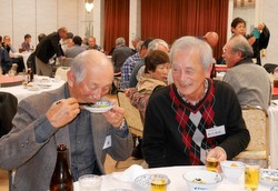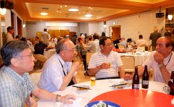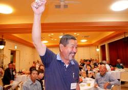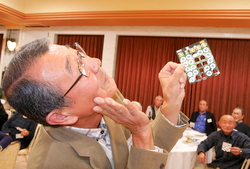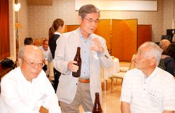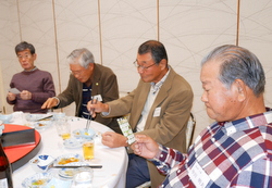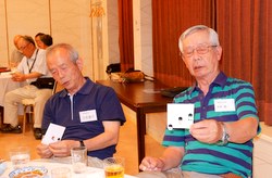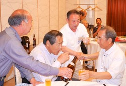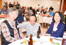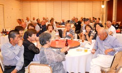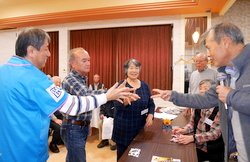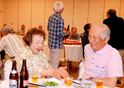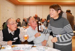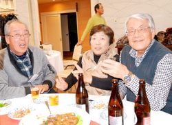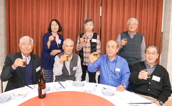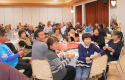 | 5月25日、佐賀地区会員61名と松九会金子会長及び佐賀工場の幹部のご出席を頂き、鳥栖市の光林飯店 にて令和元年度佐賀地区 地区総会・懇親会が開催されました。加納地区委員の司会で最初に昨年度に逝去 された会員(佐賀地区3名を含み19名)の方への黙祷を捧げた後、小副川幹事より松九会定期総会の概要報告、 30年度の地区活動報告と元年度の活動計画、及び地区運営体制が説明されました。そして本年度、金婚式を 迎えられる9名、古希対象者8名の方が紹介されました。 総会終了後、パナソニックホームズ、パナソニックリフォームからお知らせがあった後、全員での記念撮影。 そしていよいよ懇親会。来賓の金子会長のご挨拶、来賓の高橋工場長、大森委員長から佐賀工場の現状などに ついてのお話を頂いた後、前田地区委員の乾杯で懇親会がスタート。8つのテーブルを囲み、あちらこちらで 再会の喜び・近況報告など和やかに語らい、談笑の輪が広がっていました。ビールでのどを潤した後のカラオケが 会場をにぎわし、そして恒例のビンゴゲームで懇親会は最高の盛り上がりを見せました。ビンゴが当選するたびに、 当選者は宮崎さんが苦労して買い集めた賞品を品定めしていました。最後は佐賀工場人事責任者石坂さんによる 「一丁締め」で閉会。名残惜みながらも、次の再会を誓って会場を後にしました。 (レポーター 前田 究) |